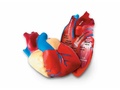 Реалистично подробная пластиковая модель сердца человека разделяется на половинки и в разрезе имеет обозначения органов (на английском языке).