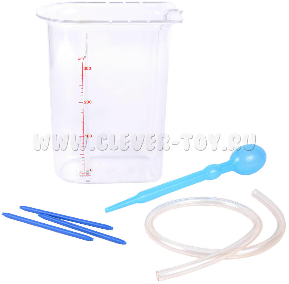 Рекомендован для проведения интерактивных занятий в школах и в домашних условиях. Станет незаменимым помощником педагогам и родителям. Вместе с сосудом для эксперимента рекомендуется использовать весы с 2-мя чашами и физическое тело, помещаемое в жидкость (например, камень).