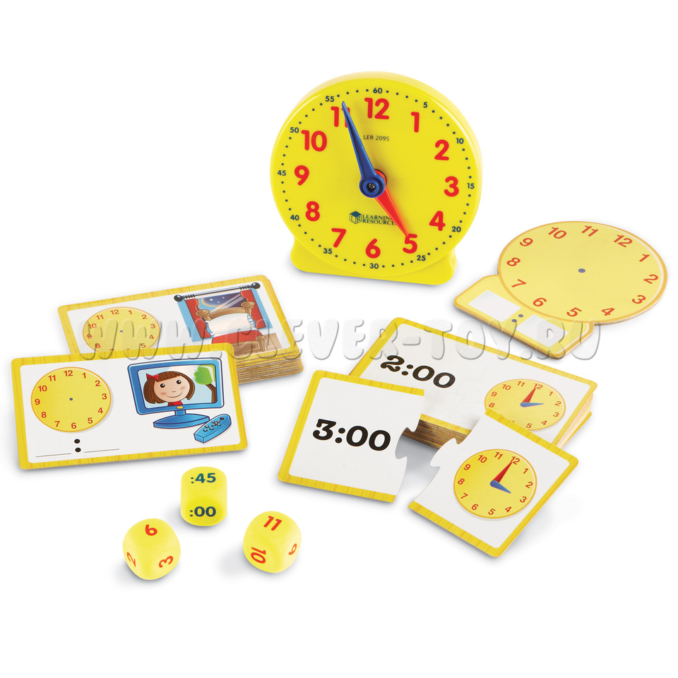 - Определение времени. Бросайте кубики и устанавливайте время на часах, затем дублируйте его на циферблате. Соединяйте пазлы, соотнося аналоговое и цифровое время.